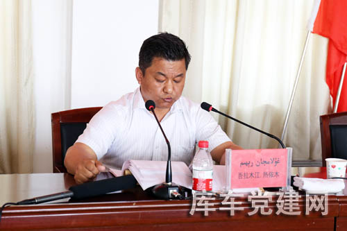 地委组织部副部长吾拉木江?热依木在培训班上讲课